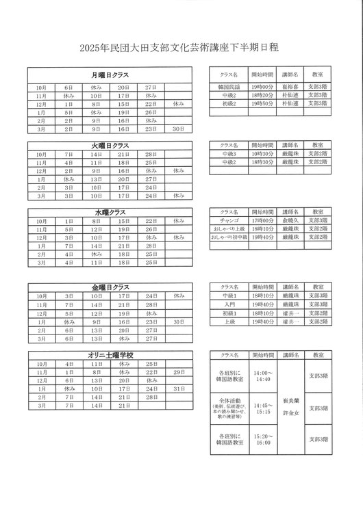 日程、内容、教材等の詳しい内容が記載されている時間割です。